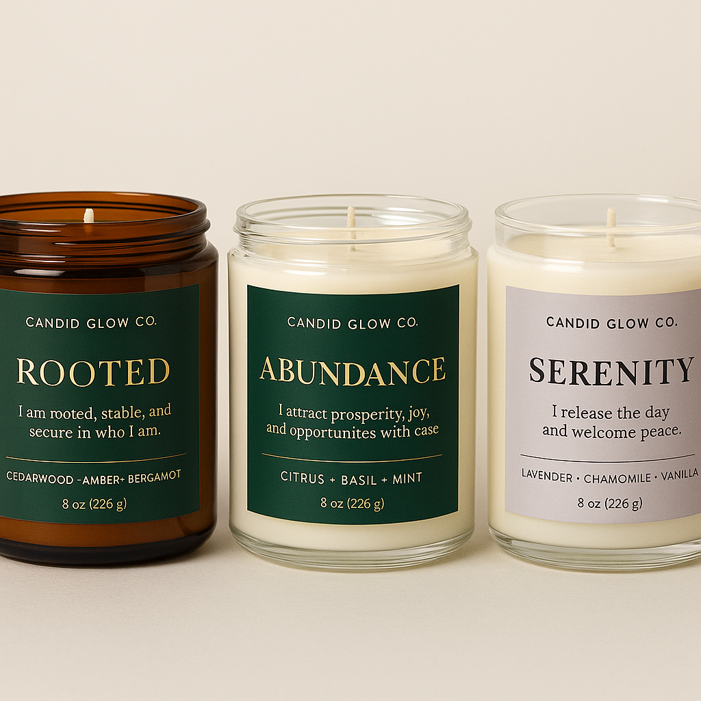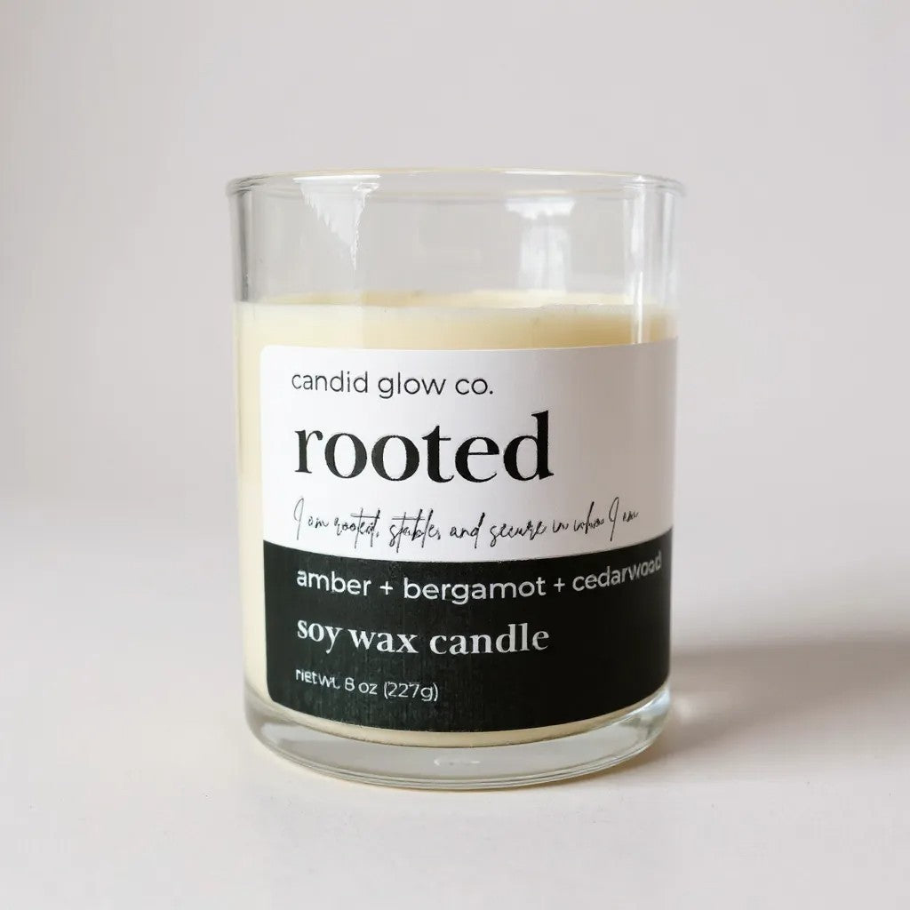 Grounded and warm, the Rooted Affirmation Candle brings the earthy blend of cedarwood, amber, and bergamot into your space. Hand-poured with natural soy wax and finished with a cotton wick for a clean burn, this candle creates a calm, inviting atmosphere.